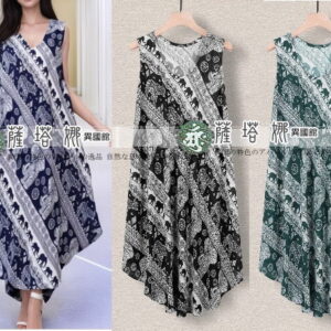 獨家泰製_大尺碼可_淺色底/深色底_藍染綁花輕柔蛋糕長裙