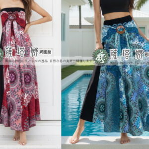 獨家泰製_黑底彩線腰兩朵四片葉梗_大寬褲裙
