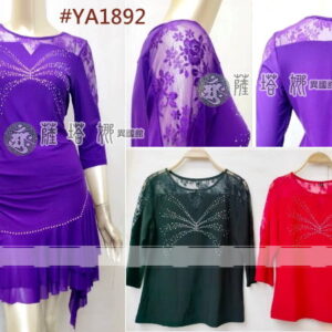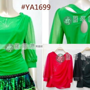 多色_YA1688_V領側抓皺燙銀點公主袖網紗上衣