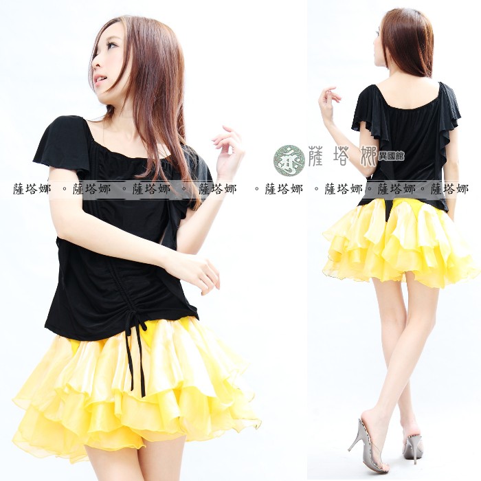 材質 : 彈性水晶麻料+雪紡紗