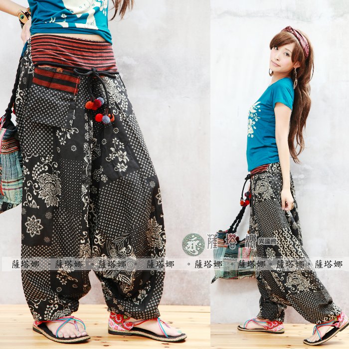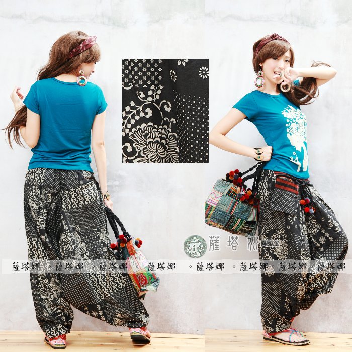 這件屬於中性設計,不分男女生都可以穿 輕鬆穿著中又能提升個人質感!! 夏天,簡單搭配坦克背心或挖背背心也是非常潮流、時尚的穿法呢! 民俗風的基本入門褲款→非“飛鼠褲”莫屬! 褲管整圈都是採縮口設計鬆緊帶設計喔! 拋拋弧度低褲管最適合搭配長版背心/上衣/外套 省去在購買造型款上衣時不知該如何搭配下半身低困擾! 以往民俗風格服飾總給人一種“穿不好會顯得老氣”低刻板印象 近年來民俗風已完全改良與日系潮流風格相融囉^^