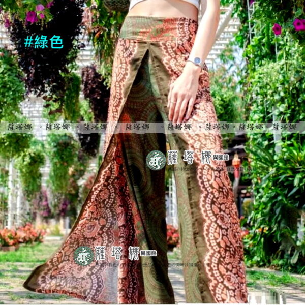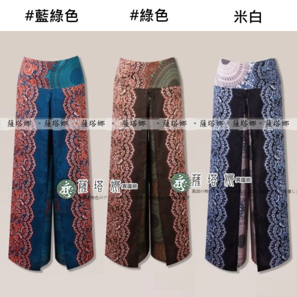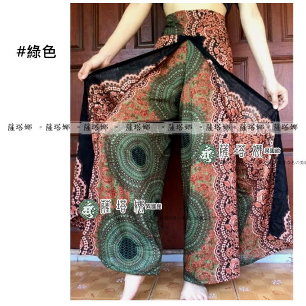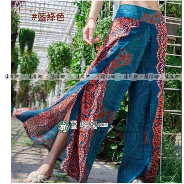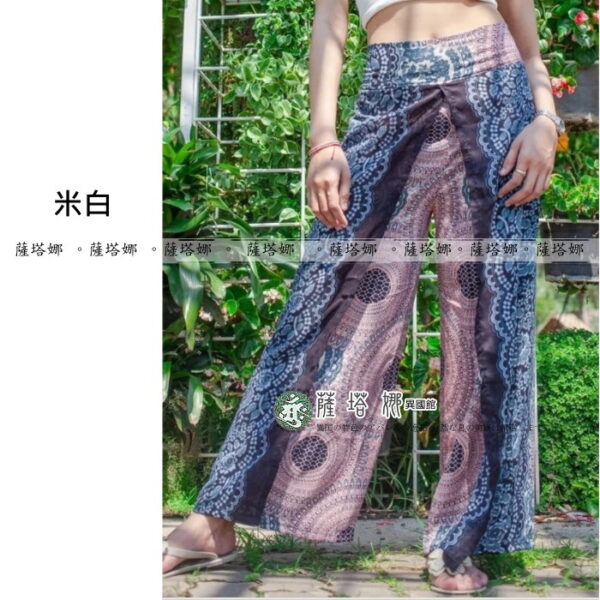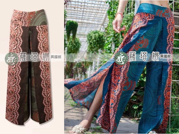 獨家泰製_加大版_有口袋_深藍底海棠花葉_黑腰頭輕柔八角褲