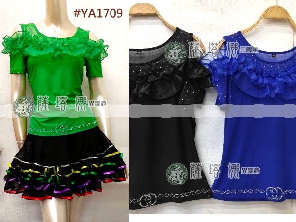 多色_M/L/XL_YA1709_雙肩挖洞領前綴波浪亮片荷葉邊上衣