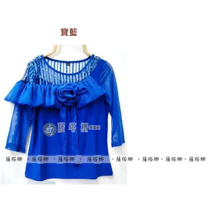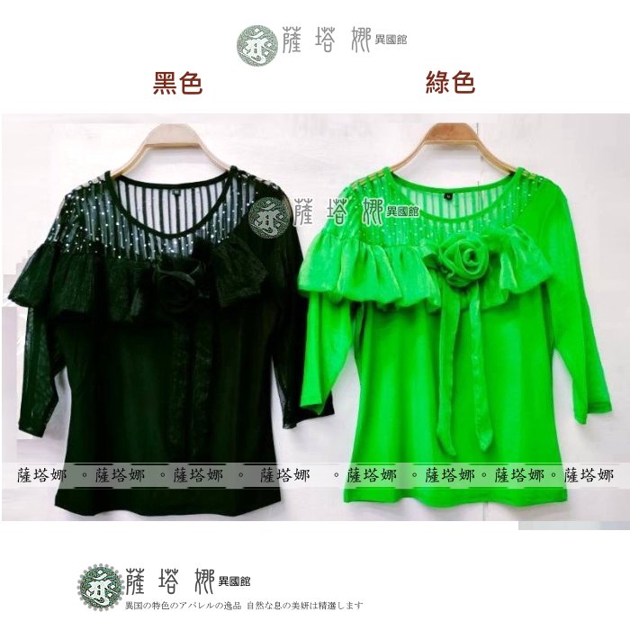 多色_M~XL_YA1897_綴雷絲燙銀點波浪領花朵七分袖上衣