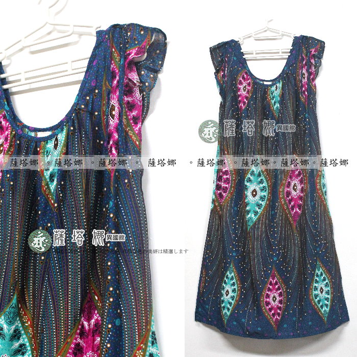 泰製大尺碼可_居家服/睡衣_土藍流線三層枇杷_波浪袖削肩斜口袋輕柔洋裝 數量