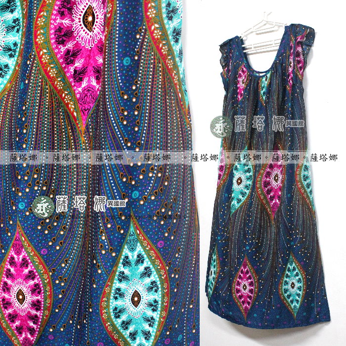 泰製大尺碼可_居家服/睡衣_土藍流線三層枇杷_波浪袖削肩斜口袋輕柔洋裝