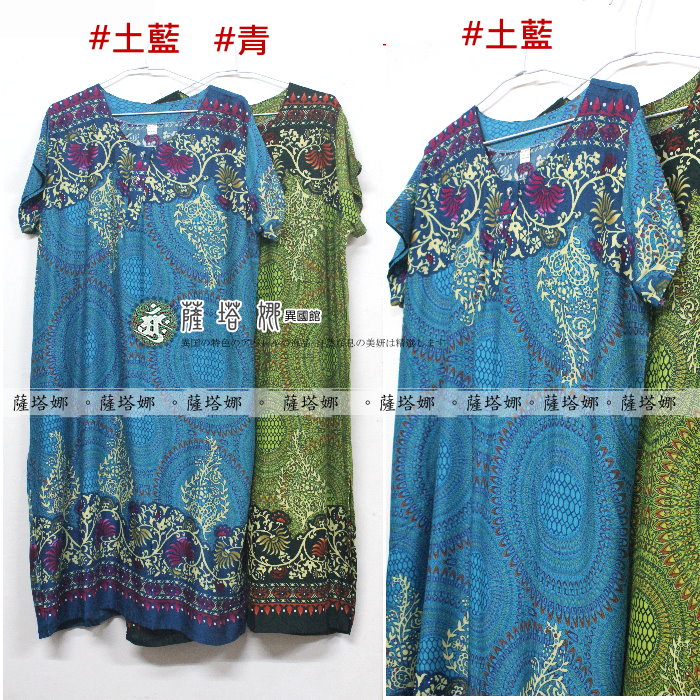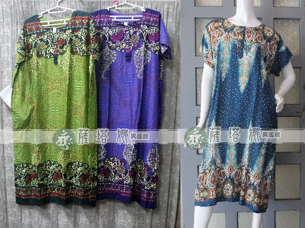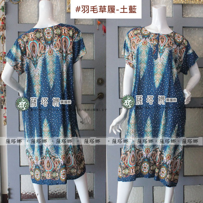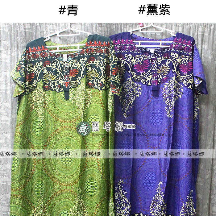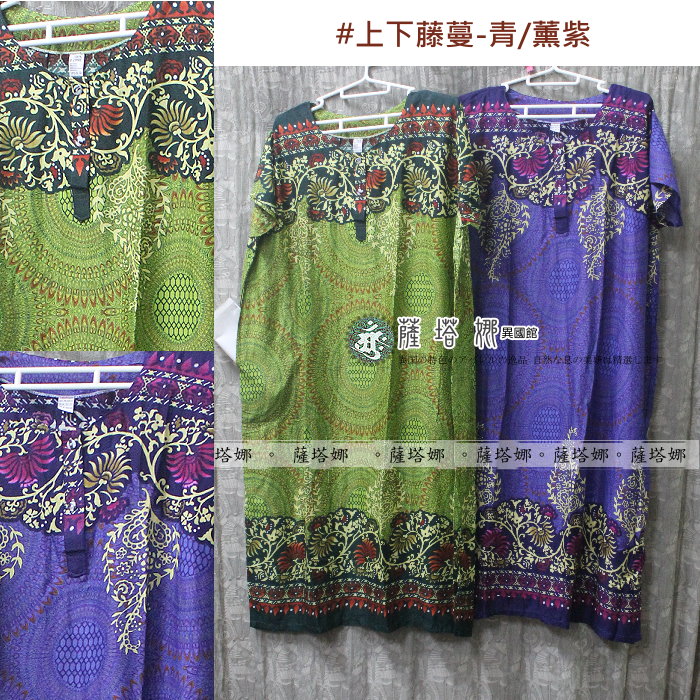 泰製大尺碼可_居家服/睡衣_薰紫/青/土藍_上下藤蔓_短袖斜口袋輕柔洋裝