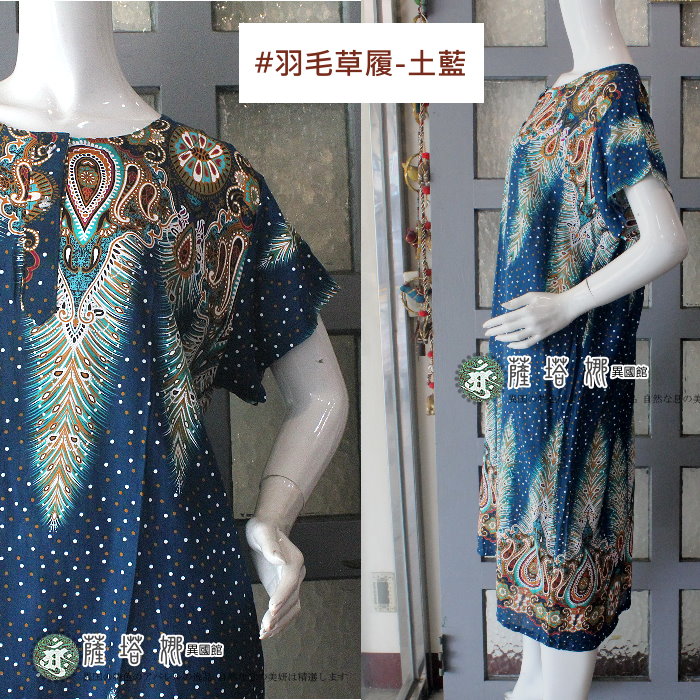 獨家泰製_粉橘/霧藍_女版_噴彩繪象頭om_竹結棉挖背洋裝