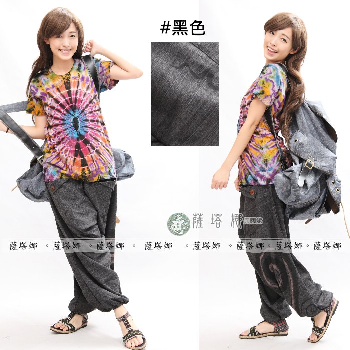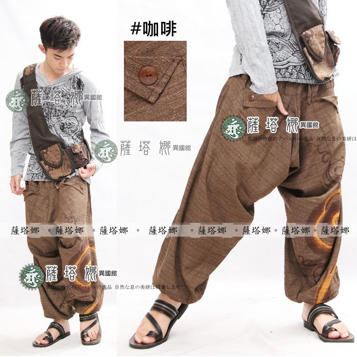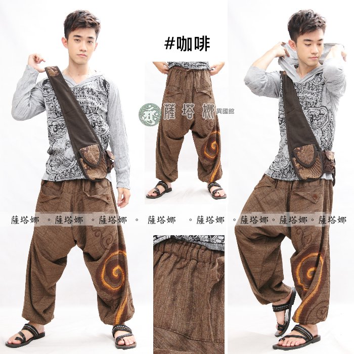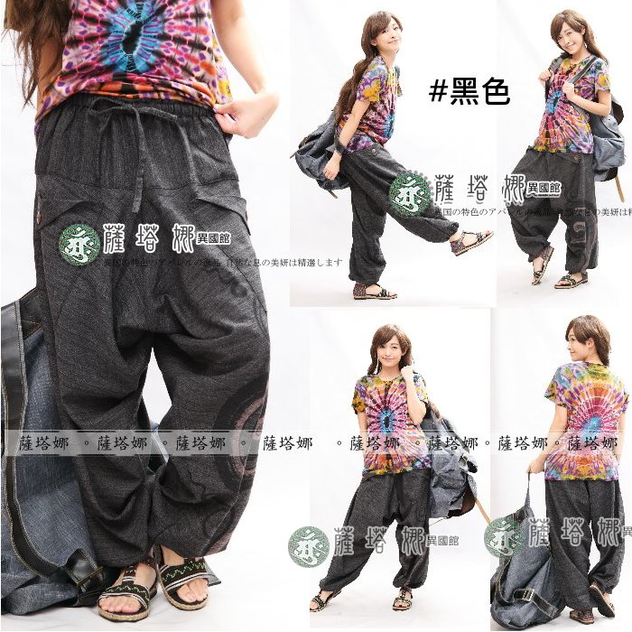 褲腳是縮口鬆緊帶設計~可以把褲腳拉高拉拋∼調整長度跟拋度