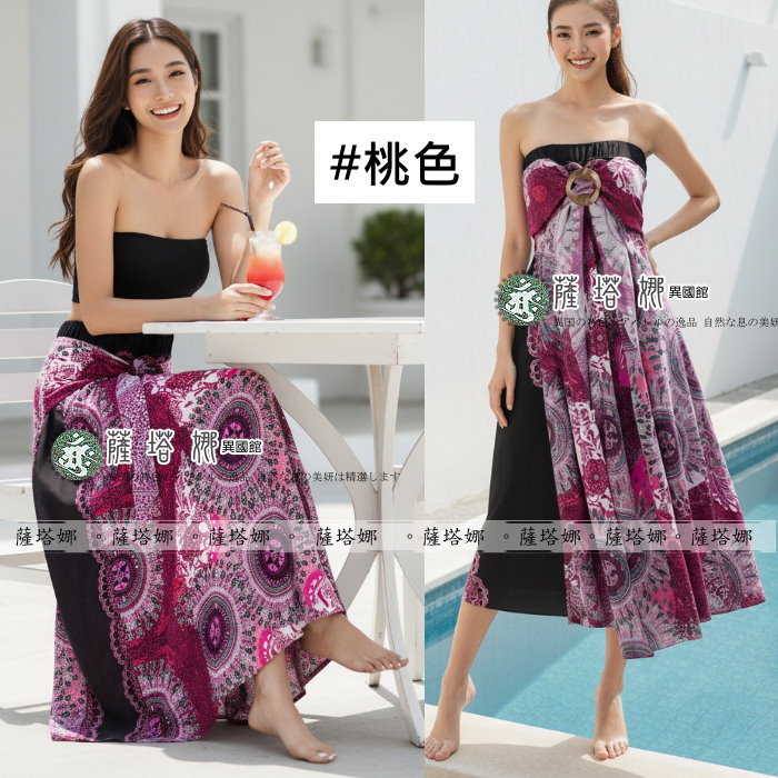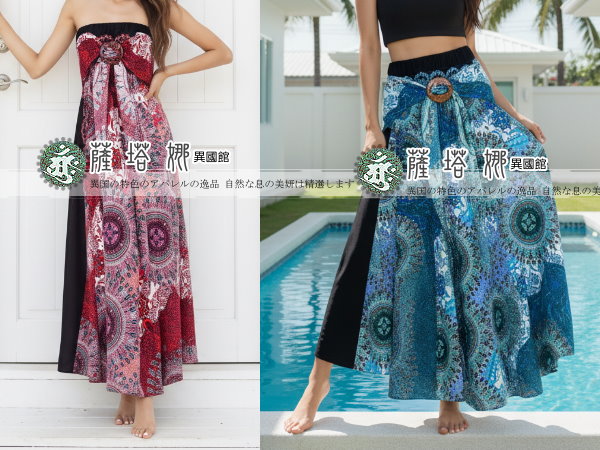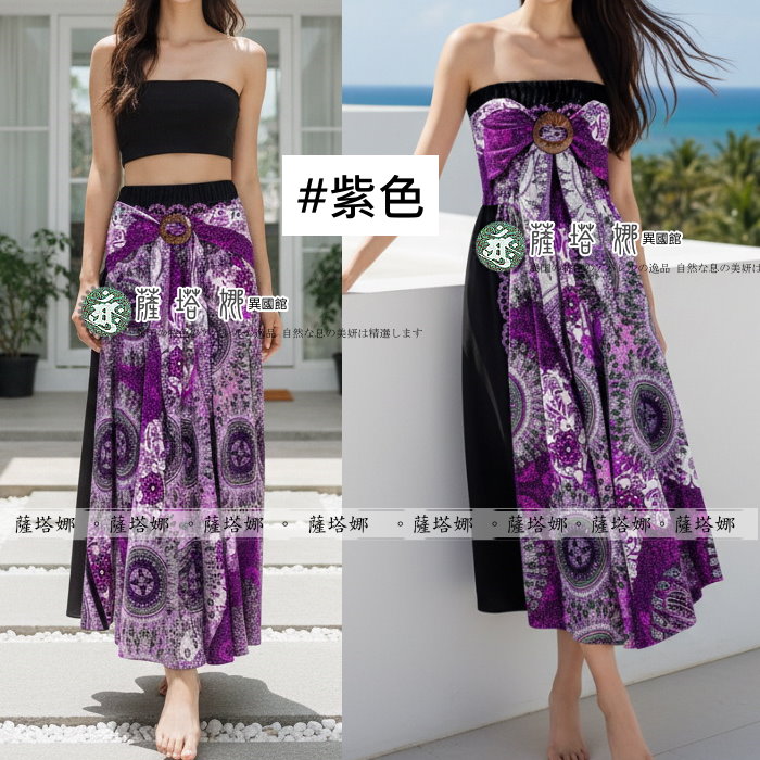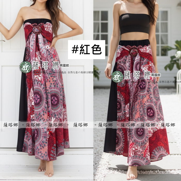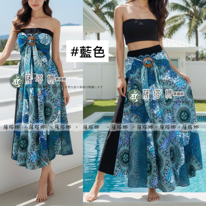 ★”限量款”★ 現貨顏色請見標題_請先問!! 每件的花布裁切稍有不同 _ 但花布都如圖所示只是位置稍不同 如遇缺貨會詢問是否【換色】或【更換其他款式】 胸 / 腰圍是整片細鬆緊帶設計,附有椰殼製釦環(可隨意拆卸) 穿法多變可以當(1)平口洋裝。(2)綁脖洋裝。或是(3)裙子穿唷! 沙龍裙由來其實就是因為 在東南亞國家…如泰國、馬來西亞等 因在地氣溫偏高,天氣相當炎熱!! 所以發展出透氣且通風的沙龍服飾 經改良後大量融入萬花爭寵的印花風格 成了市面上隨處可見且廣泛被各個年齡層接受 以及深受所有年輕辣妹們喜愛低”南洋風情”優 無論是簡單低色調,還是繽紛艷麗的多變色彩 這款可以當洋裝或是裙子來穿的魔力沙龍裙 就是今夏最New呈現給甜心們低當季首選之ㄧ優。