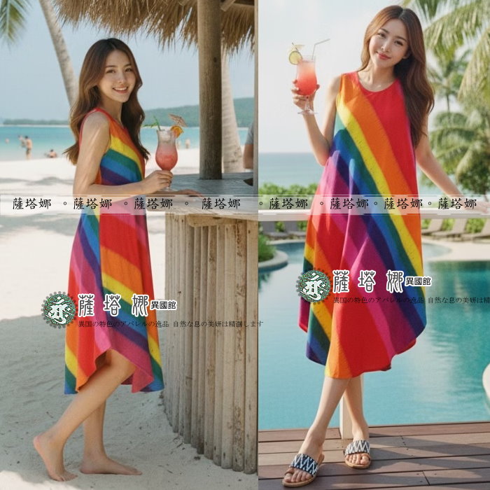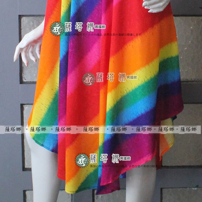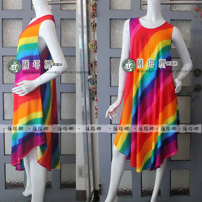 —-商品描述—- ★”限量款 : “★ 整批彩虹色布料因為裁剪位置不同~ 每件的彩虹顏色層次位置無法完全跟圖片一樣但都是同樣花布製作 如遇缺貨(追加期約7-14天左右) 會以評價詢問是否【等待】或【換色】或【更換其他款式】 材質穿起來相當吸汗透氣唷^^ 可自行內搭短袖/小可愛在裡面喔 可以單穿當洋裝喔! 是一款非常簡單卻很有異國風味的一件上衣 小幫手強烈推薦給您 ~ 本款適合剛開始穿搭民俗風入門的甜心必備喔!! 沙龍裙由來其實就是因為 在東南亞國家…如泰國、馬來西亞等 因在地氣溫偏高,天氣相當炎熱!! 所以發展出透氣且通風的沙龍服飾 經改良後大量融入萬花爭寵的印花風格 成了市面上隨處可見且廣泛被各個年齡層接受 以及深受所有年輕辣妹們喜愛低”南洋風情”優 無論是簡單低色調,還是繽紛艷麗的多變色彩 就是今夏最New呈現給甜心們低當季首選優。