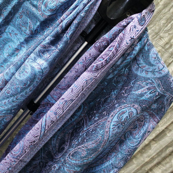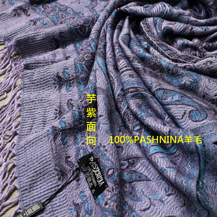 請先問_觸感柔軟親膚有光澤_100%PASHNINA羊毛_雙面藍芋頭紫草履_羊毛流蘇圍巾