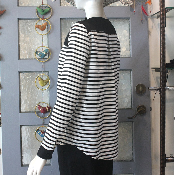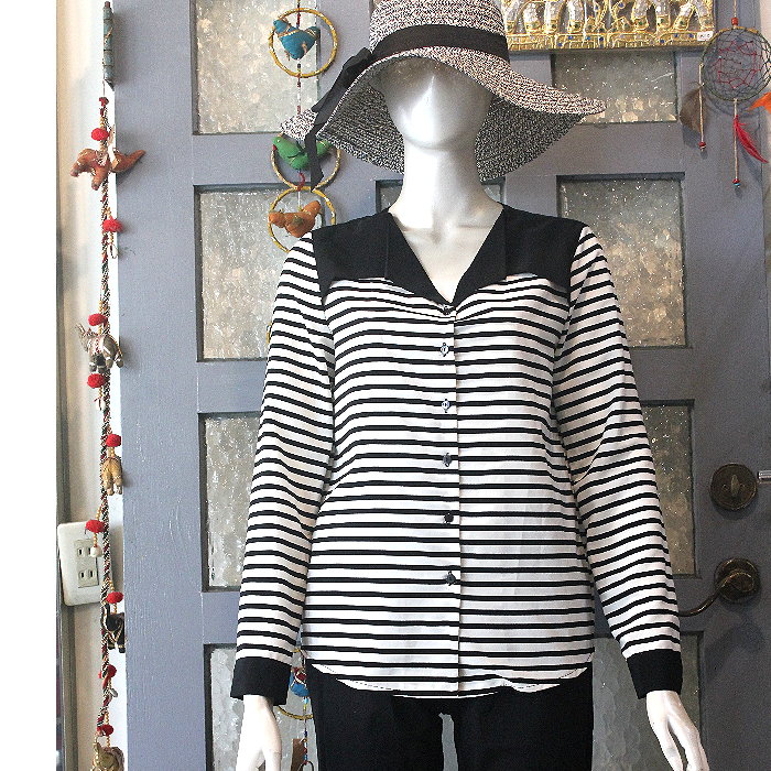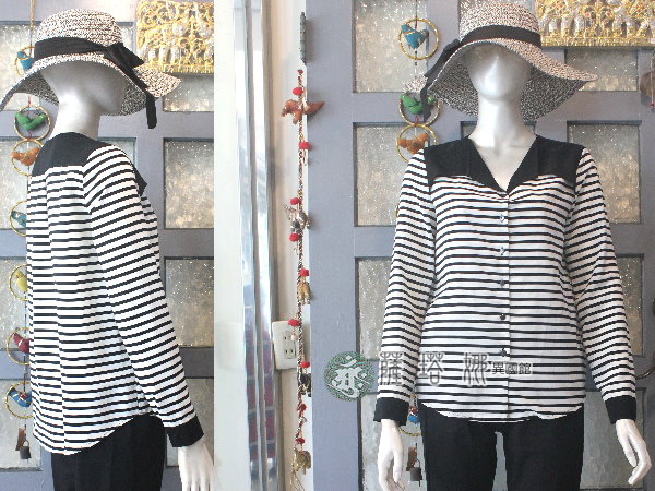 限品_柔軟滑順_白底黑條紋_黑翻領排釦人造絲長袖襯衫 數量