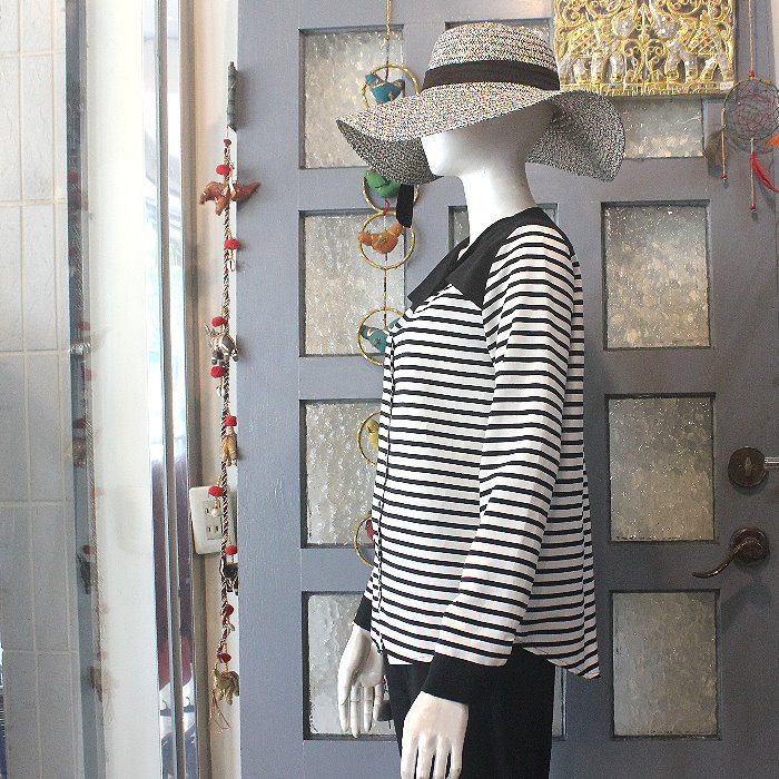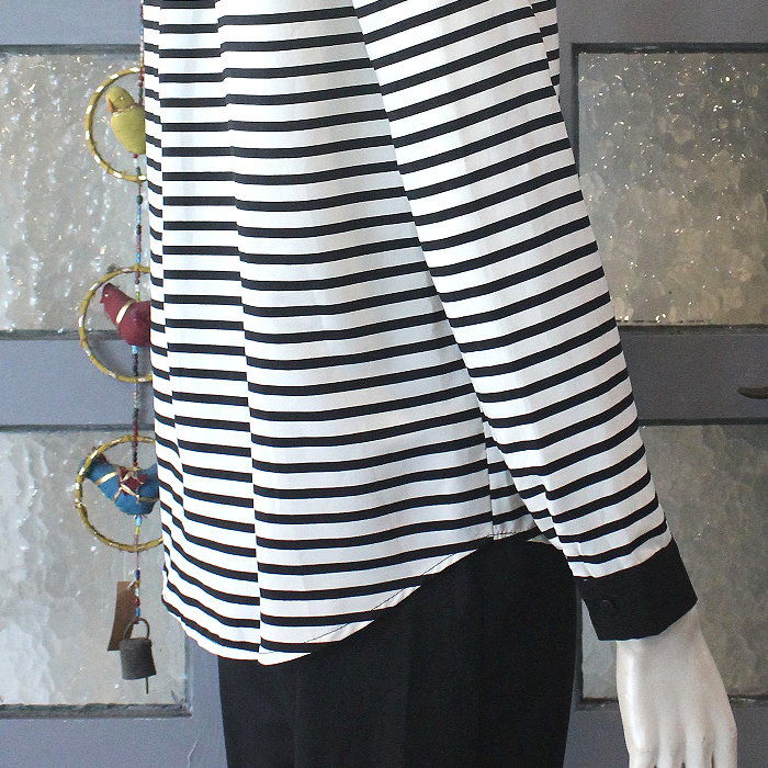 限品_柔軟滑順_白底黑條紋_黑翻領排釦人造絲長袖襯衫