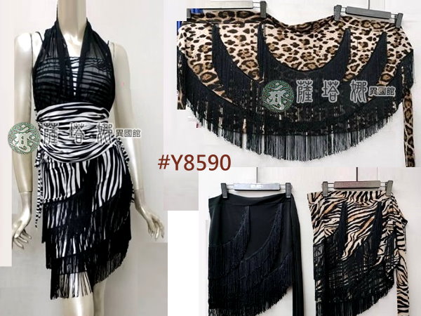 黑色/斑馬/B豹/咖大豹_Y8590_半圓形綴流蘇一片式綁帶腰裙/泳裙/腳踏車外裙/瑜珈裙 數量
